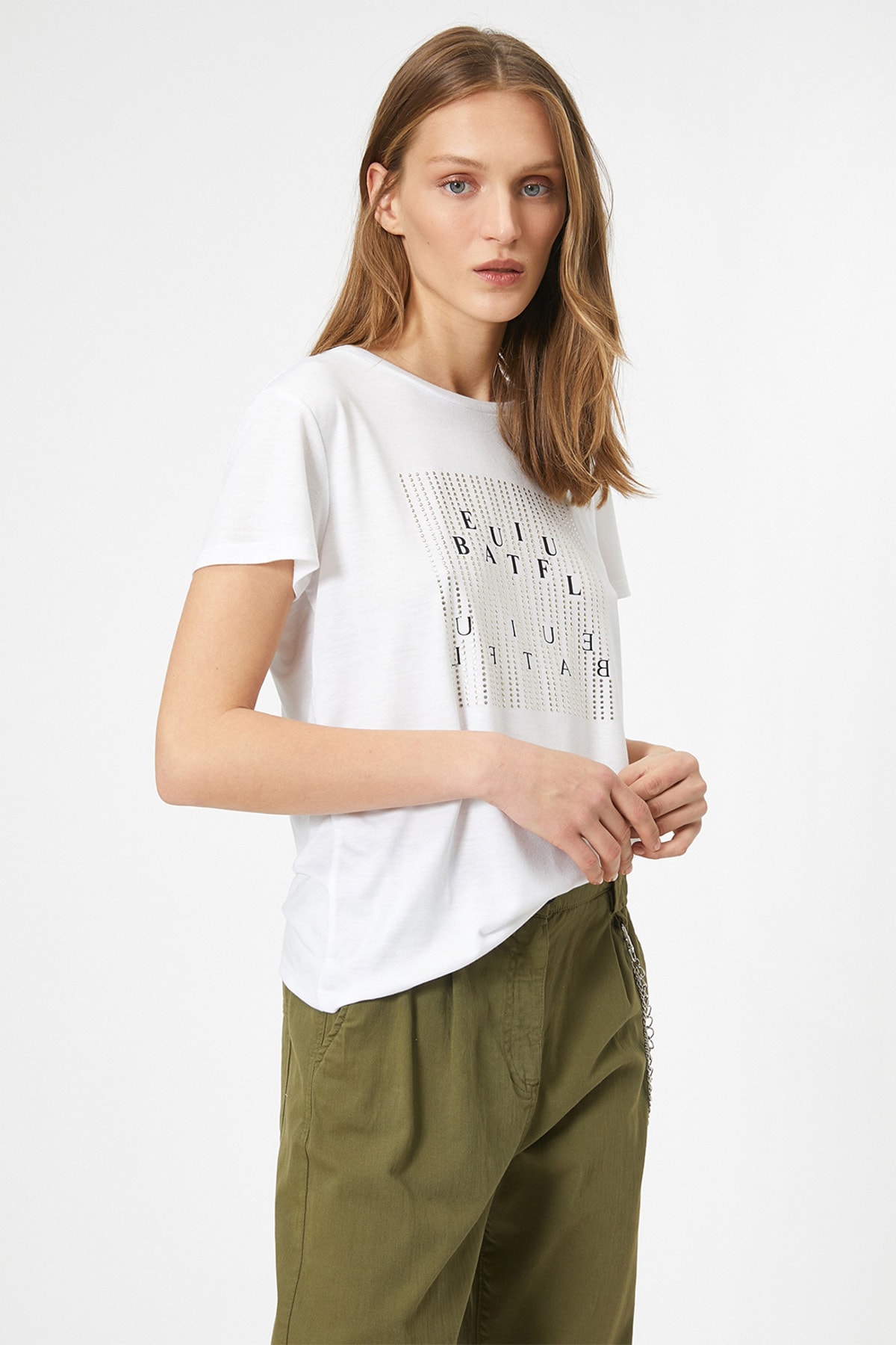 تیشرت زنانه سفید کوتون | 24YY59000302 اورجینال