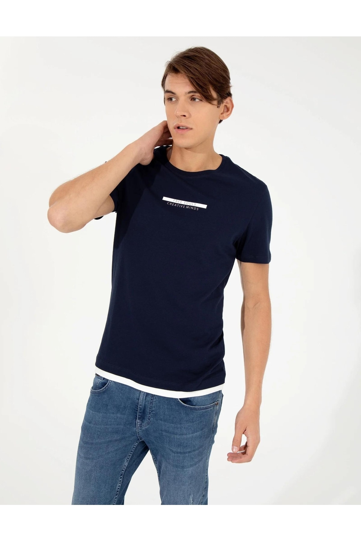تیشرت مردانه آبی سرمه ای پیرکاردین | G021SZ011.000.1449774.VR033 اورجینال