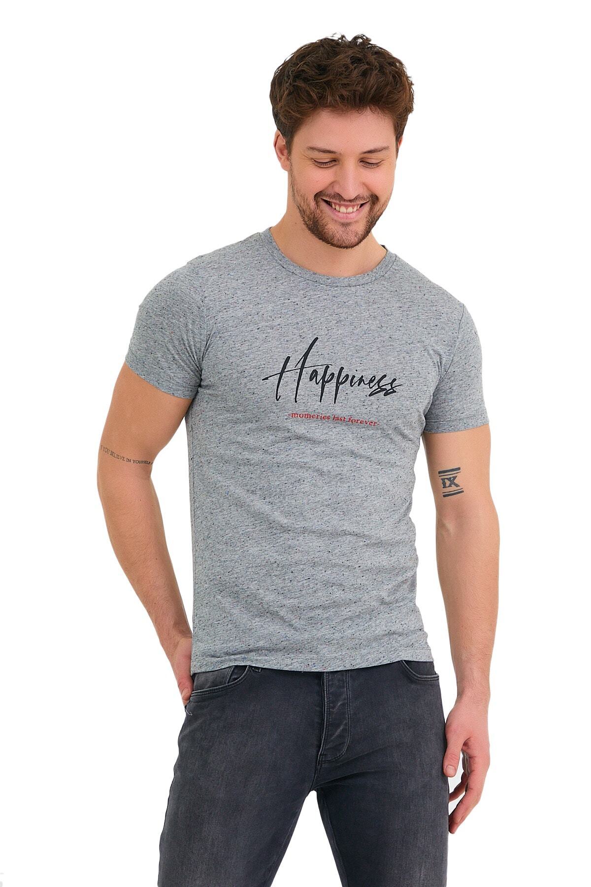 تی شرت آستین کوتاه طرح اسلیم فیت چاپ شده Grimelanj مدل Happiness
