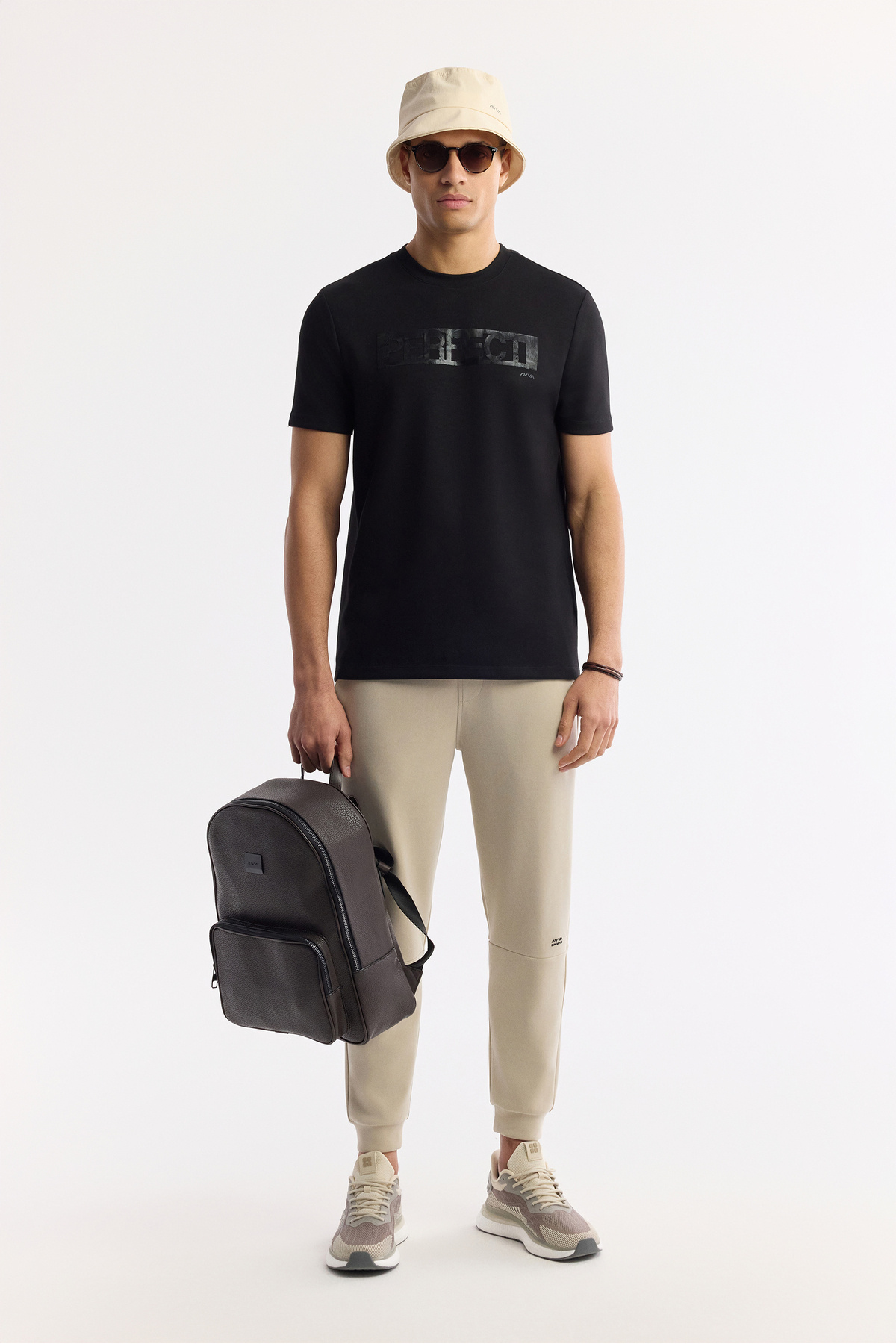 تی شرت مردانه یقه گرد مشکی طرح دار دو کشباف اینترلاک سایز معمولی A51Y1044