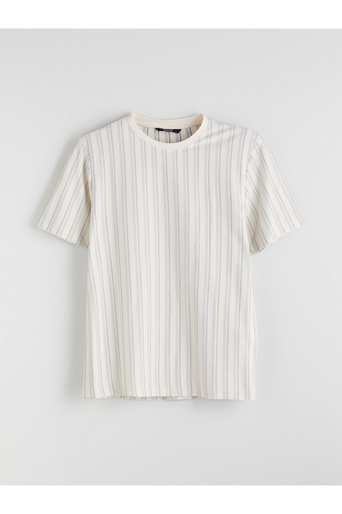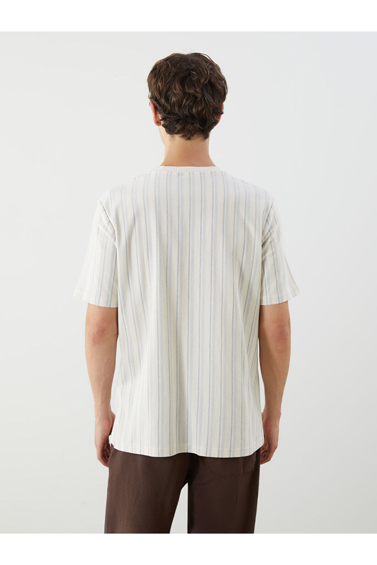 تی شرت مردانه یقه گرد طرح راه راه نخی شانه شده
