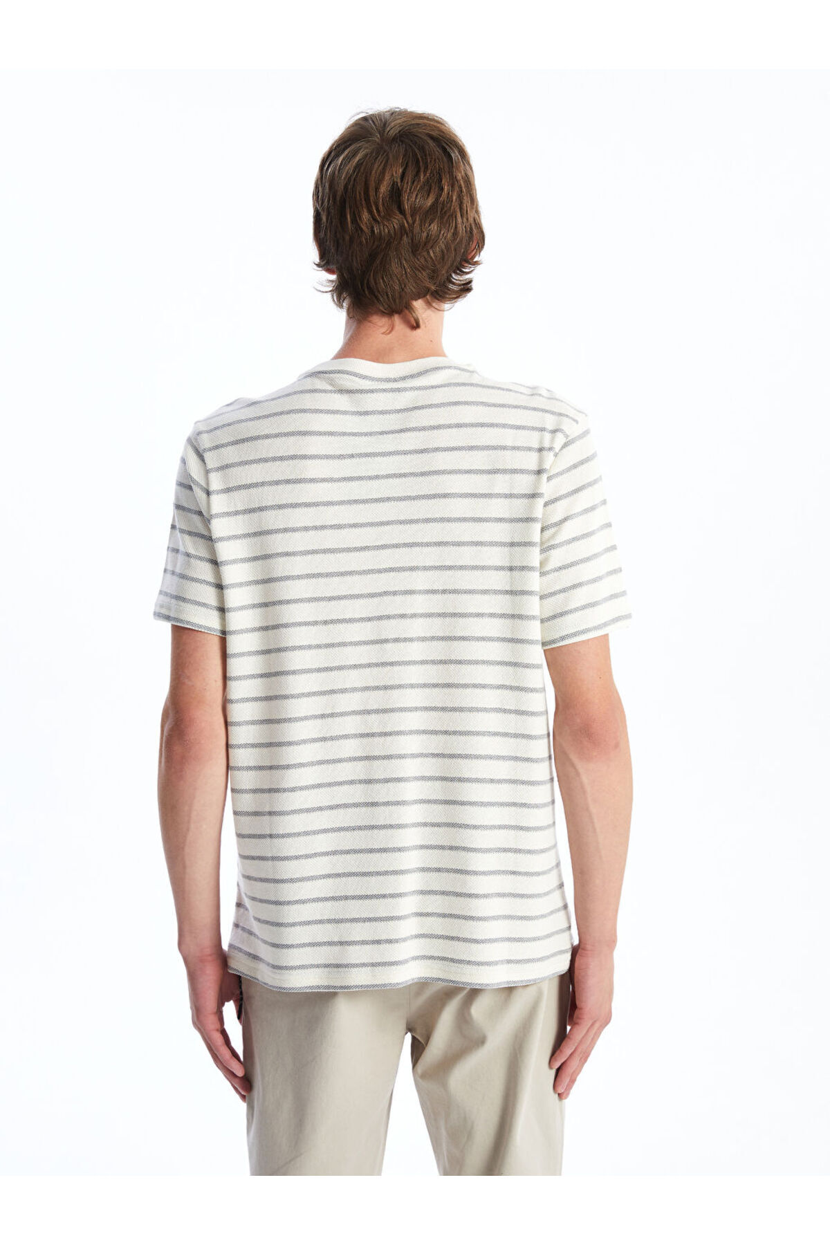 تیشرت مردانه یقه گرد آستین کوتاه راه راه نخی شانه شده