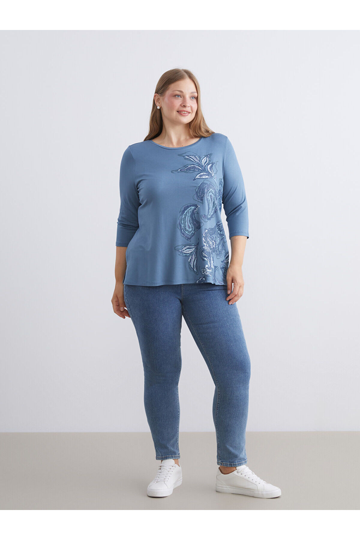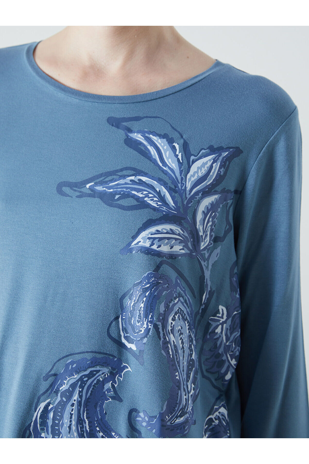 تیشرت زنانه گلدار ایندیگو یقه گرد
