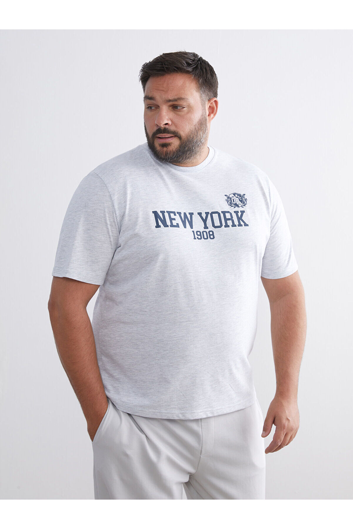 تیشرت مردانه یقه گرد XSIDE طرح نیویورک از جنس پنبه شانه شده