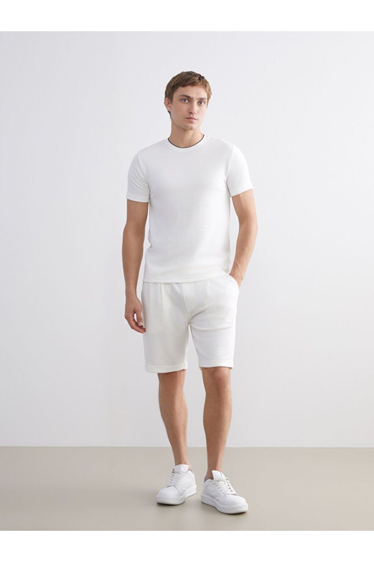 تیشرت بافتدار مردانه آستین کوتاه یقه گرد کلاسیک LCWAIKIKI