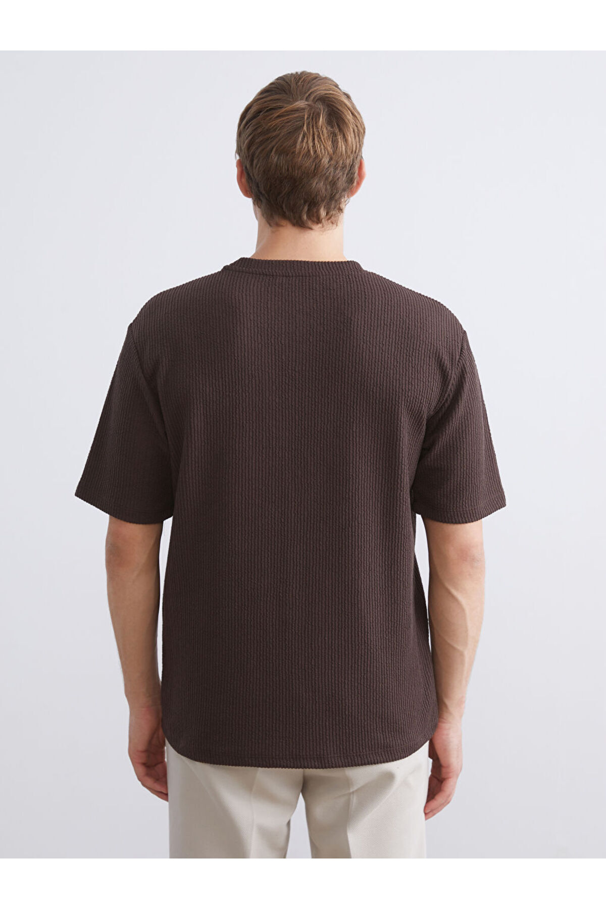 تی شرت مردانه یقه گرد قهوه ای نخی شانه شده