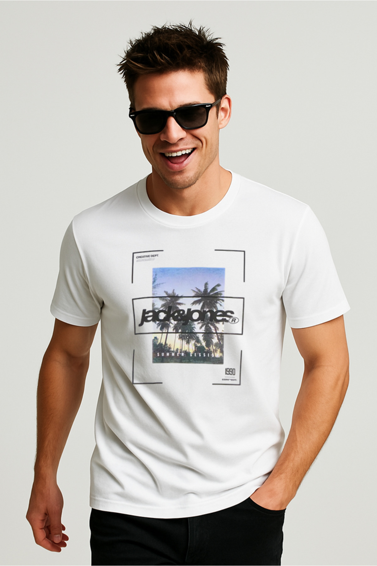 تیشرت جک اند جونز سفید آستین کوتاه 100% پنبه | | نمایندگی جک اند جونز