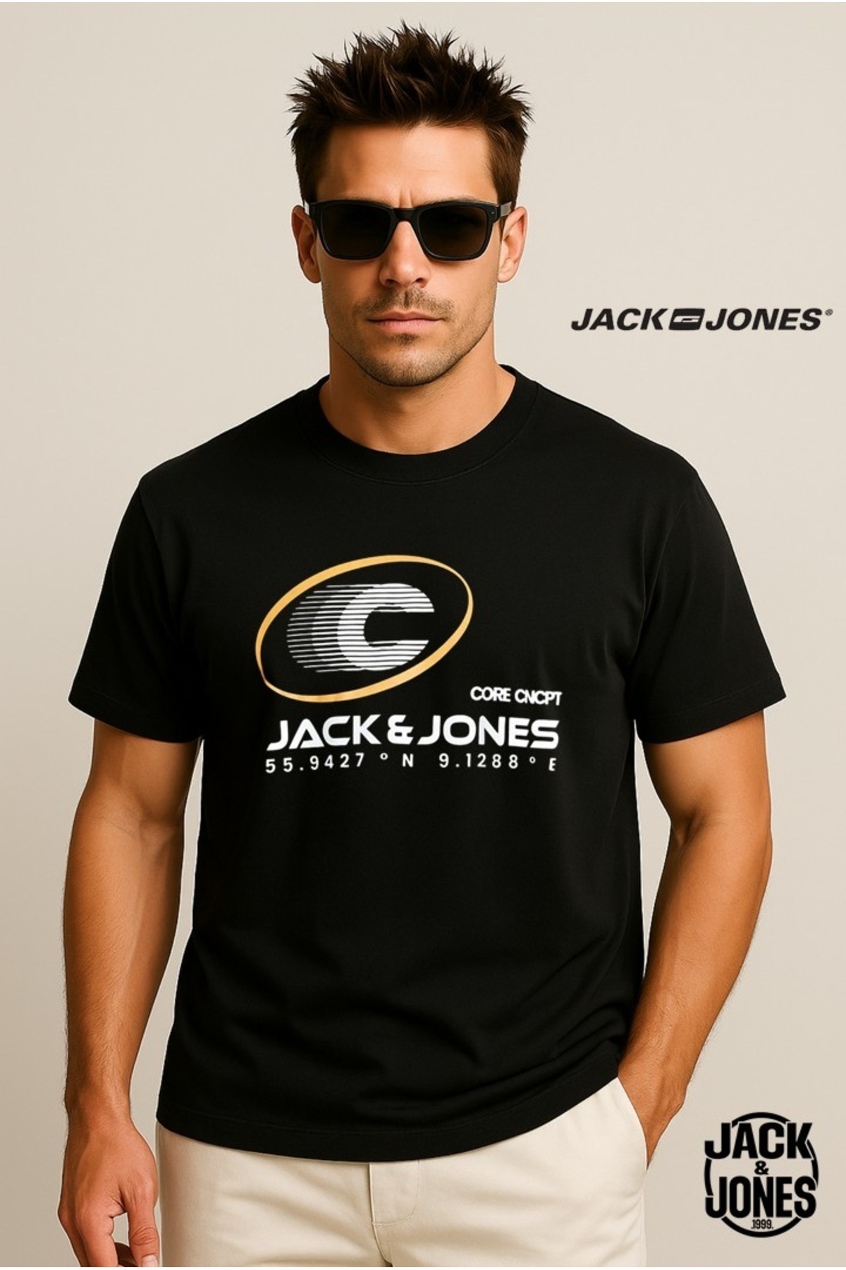 تیشرت جک اند جونز مشکی آستین کوتاه 100% پنبه | | نمایندگی جک اند جونز