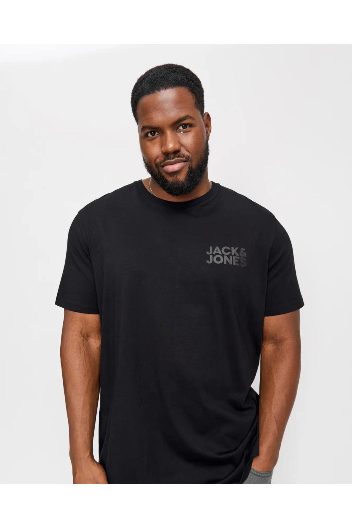 تیشرت آستین کوتاه سایز بزرگ با نوشته روی سینه چپ، کد ۱۲۱۵۸۵۰۵ جک اند جونز