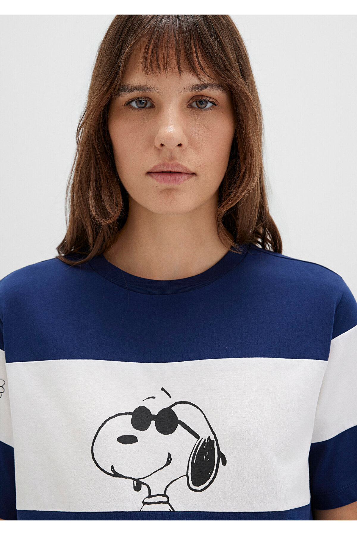 تی‌شرت طرح‌دار آبی سرمه‌ای اسنوپی، سایز معمولی / برش معمولی، کد ۱۶۱۳۶۷۱-۷۰۴۹۱