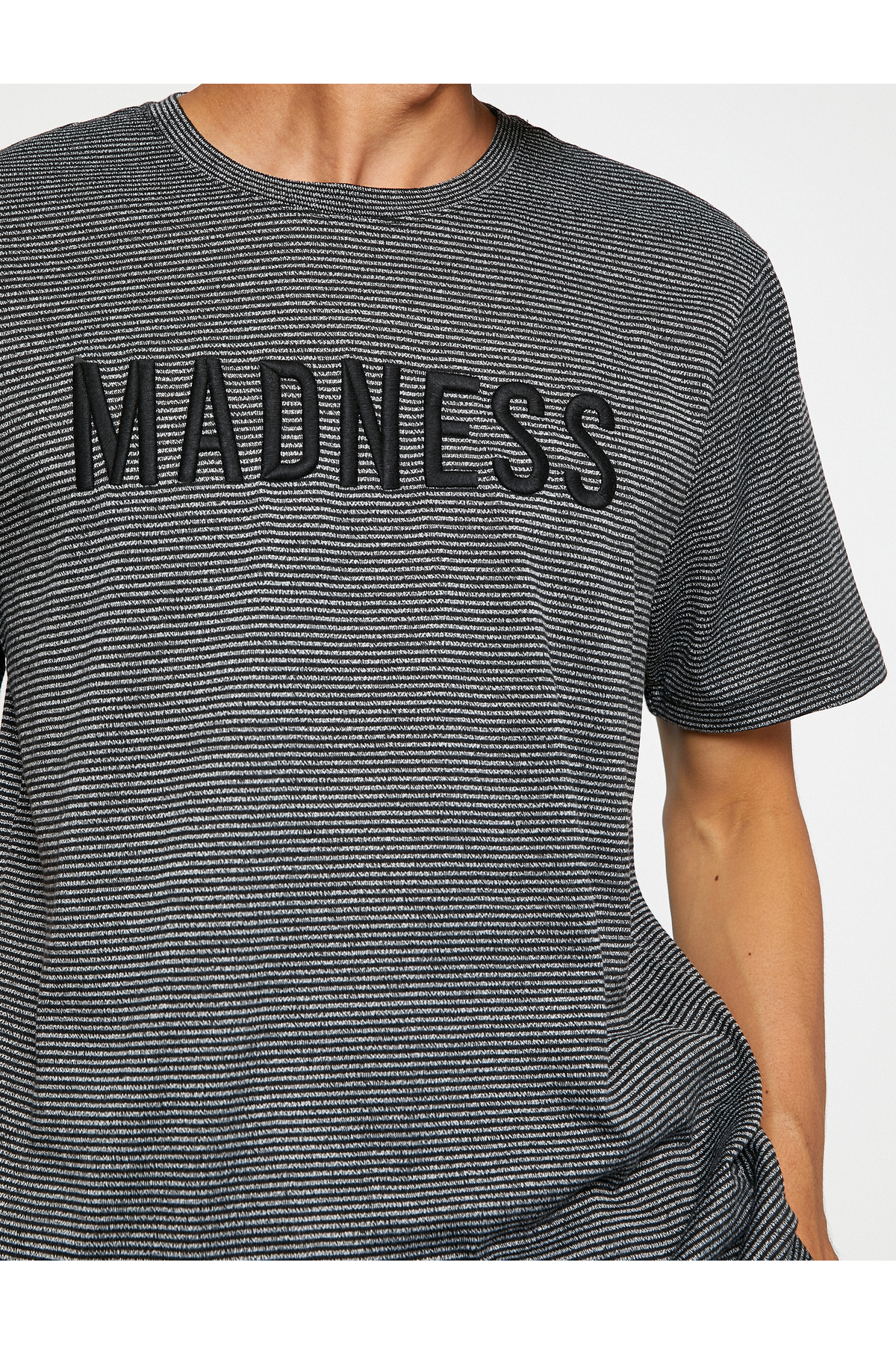 شعار گلدوزی شده روی تیشرت یقه گرد ساده