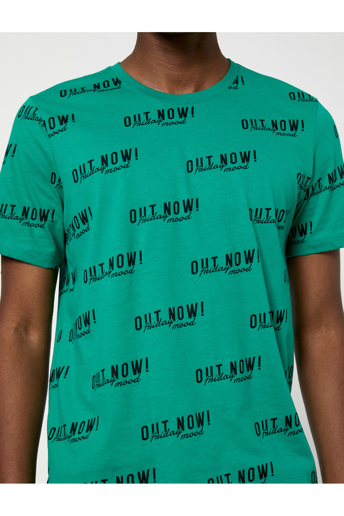 تیشرت آستین کوتاه یقه گرد طرح شعار از جنس پنبه