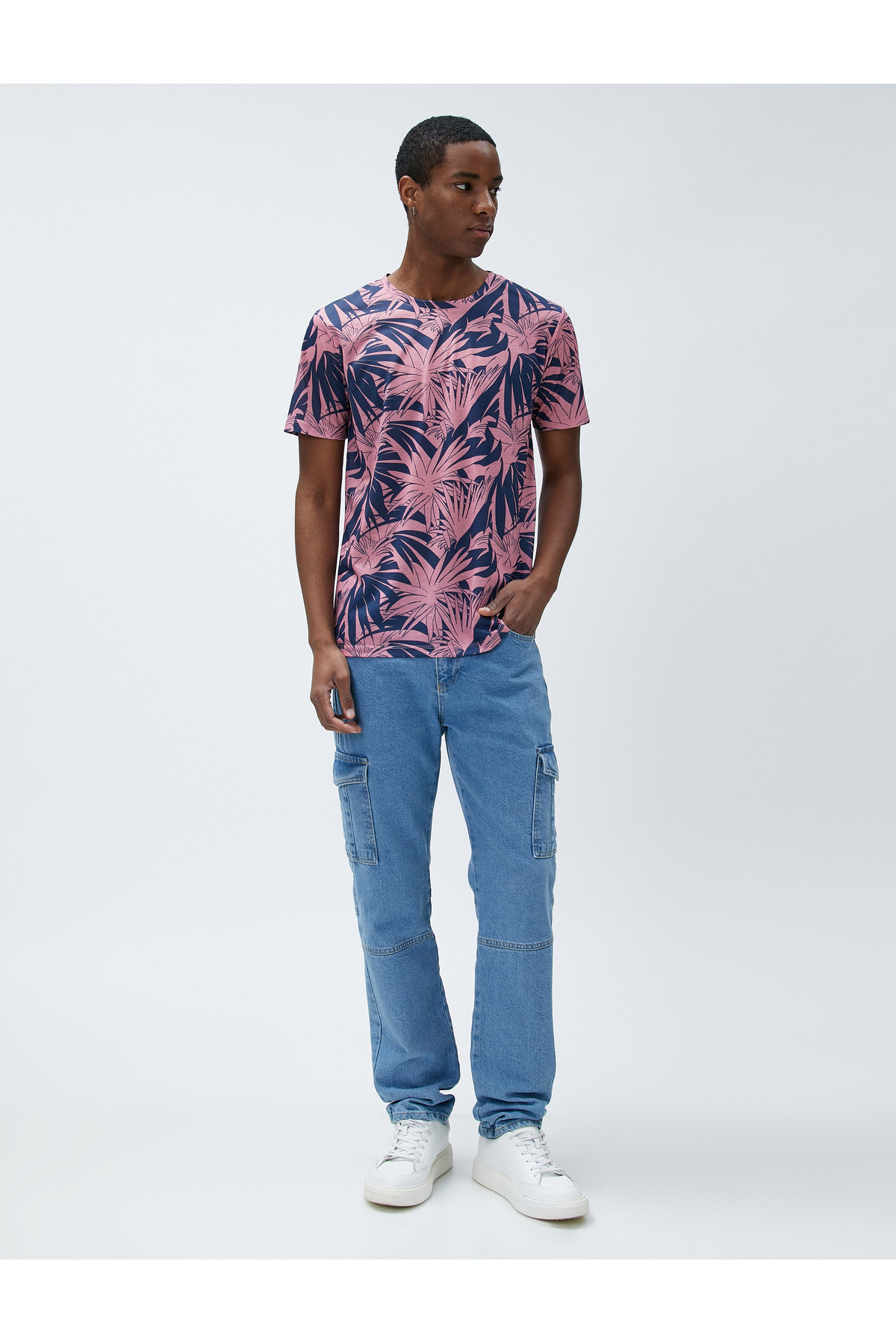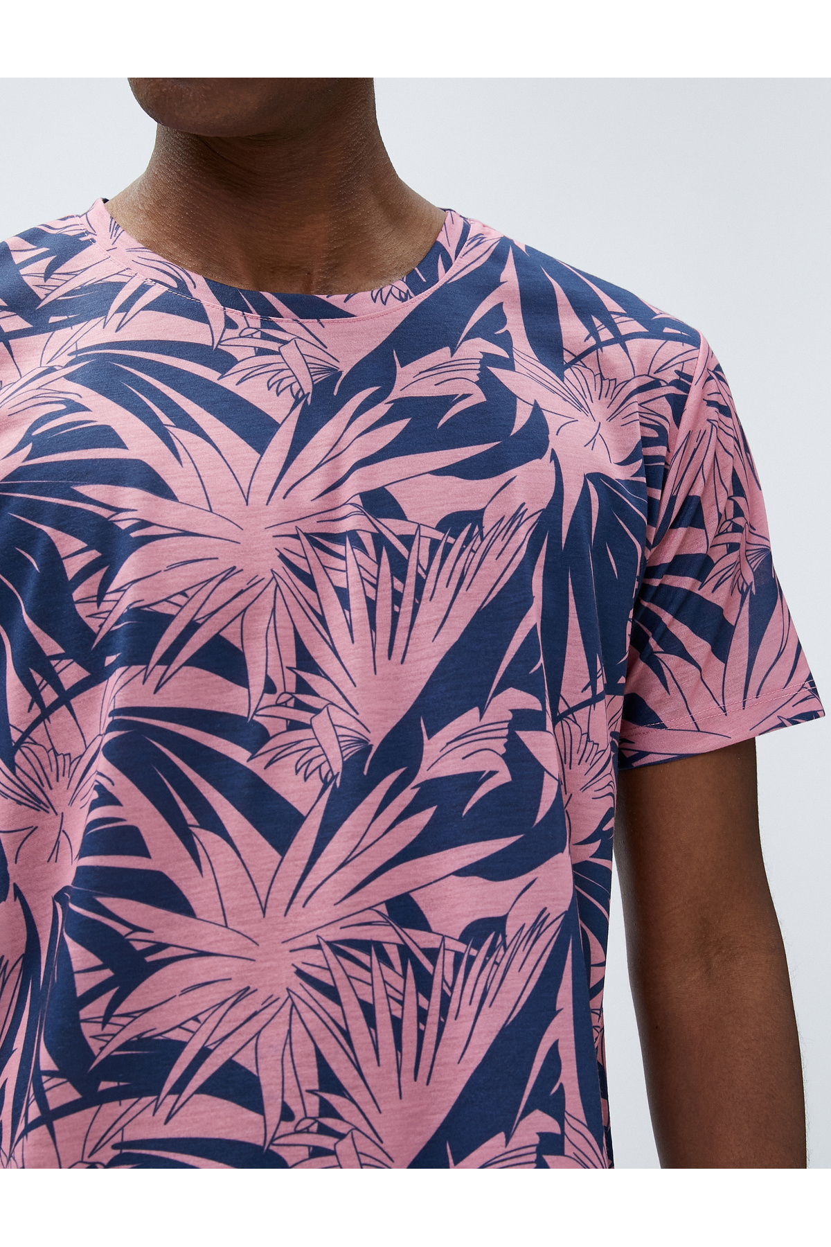 تیشرت آستین کوتاه طرح برگ، یقه گرد، اسلیم فیت