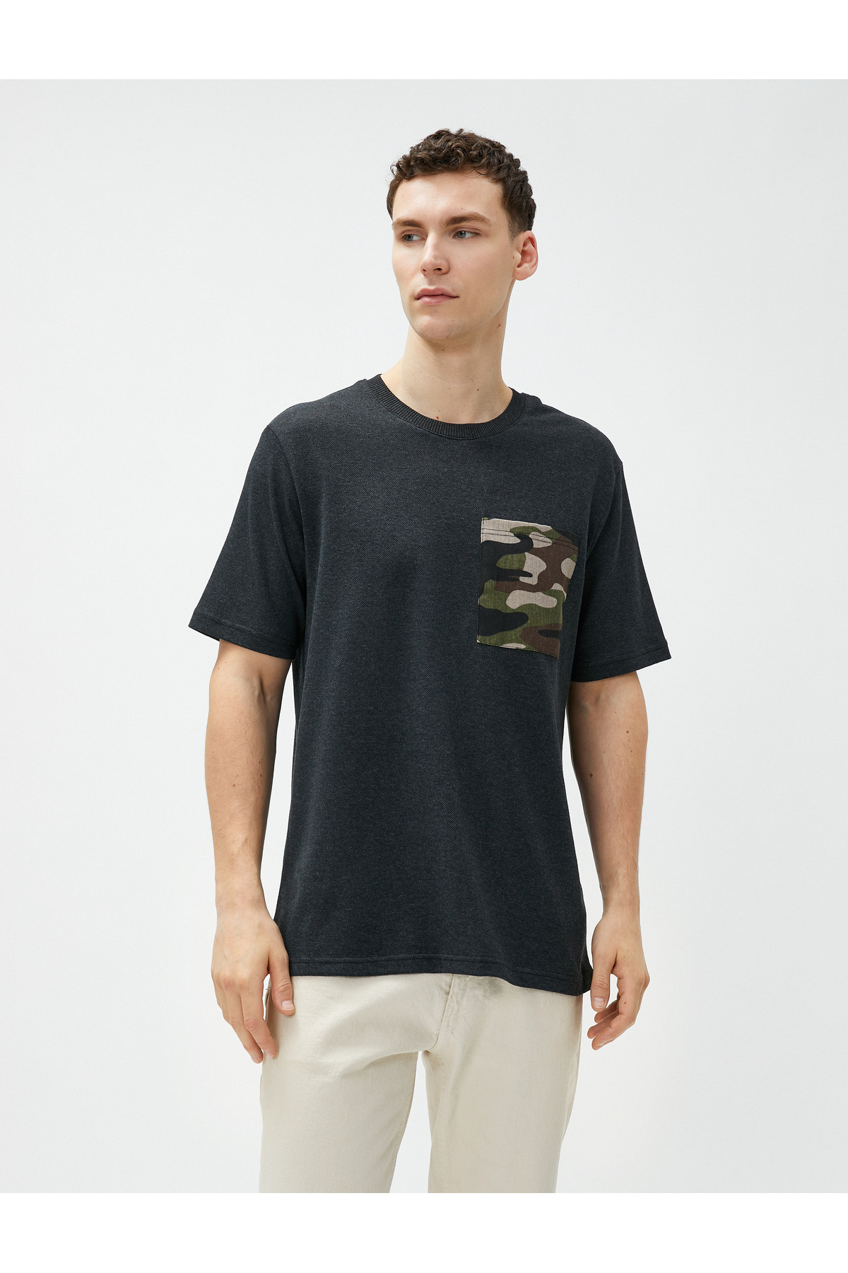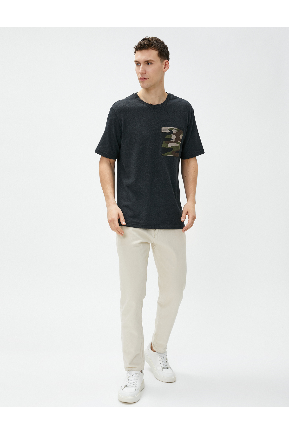 تی‌شرت آستین کوتاه یقه گرد گشاد، جنس نخی، جیب‌دار