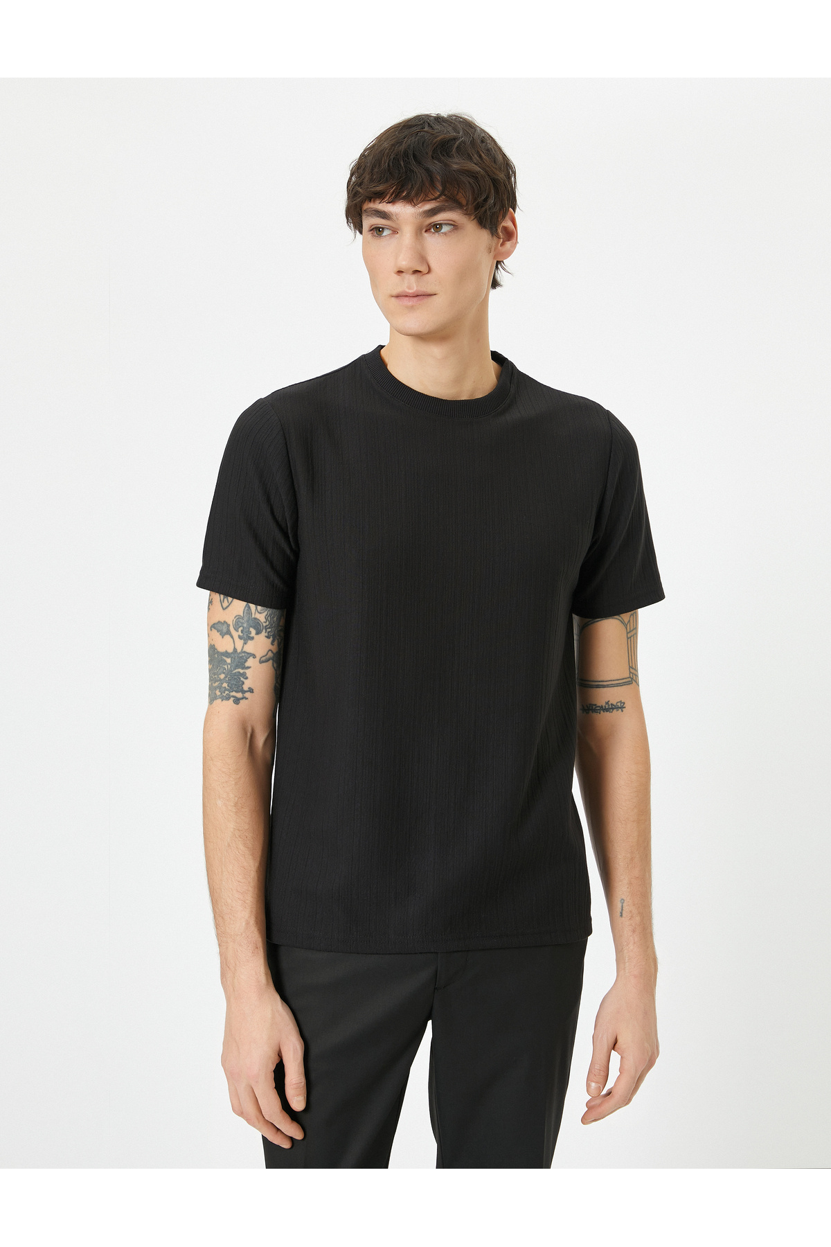 تیشرت یقه گرد آستین کوتاه طرح بافتدار
