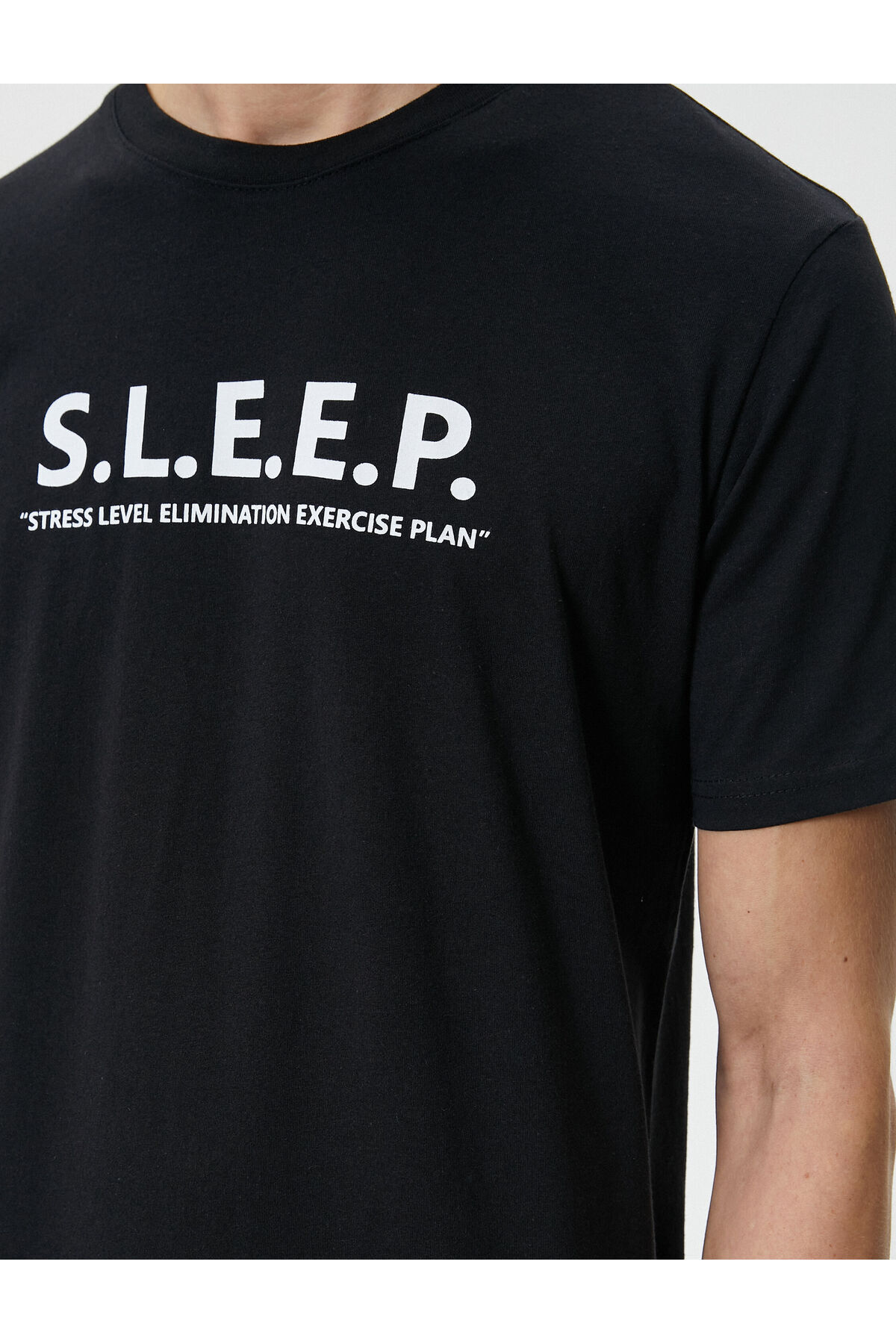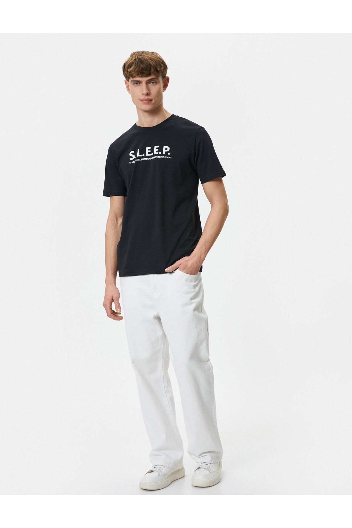 تیشرت آستین کوتاه یقه گرد طرح شعار از جنس پنبه