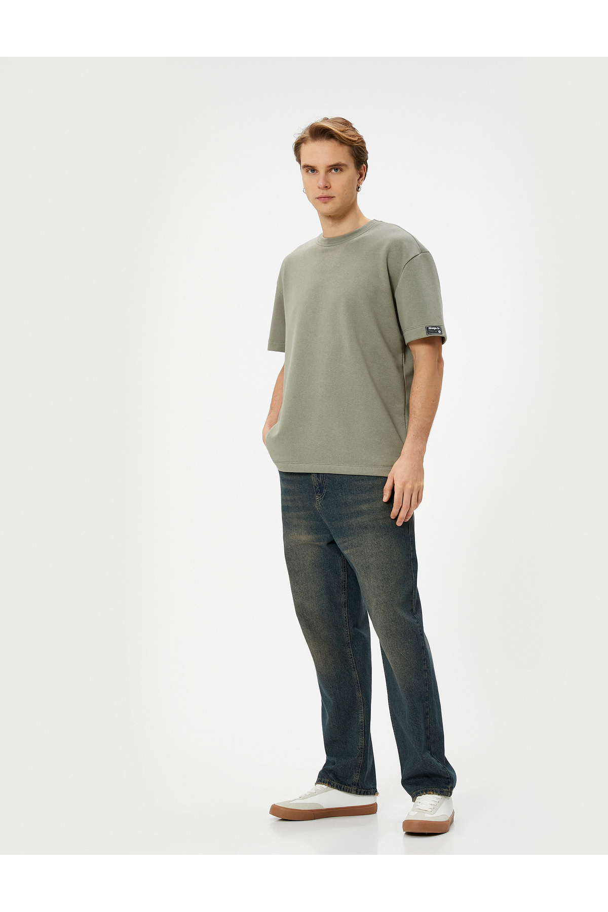 تیشرت گشاد با جزئیات برچسب و یقه گرد