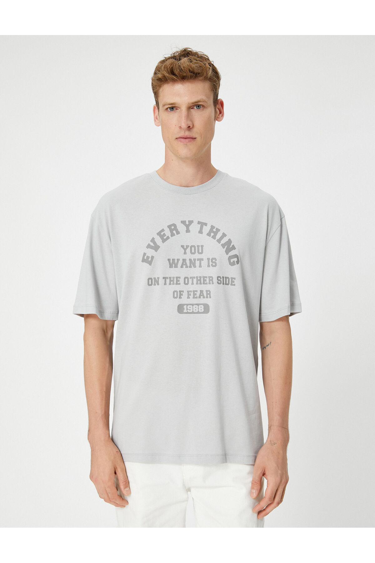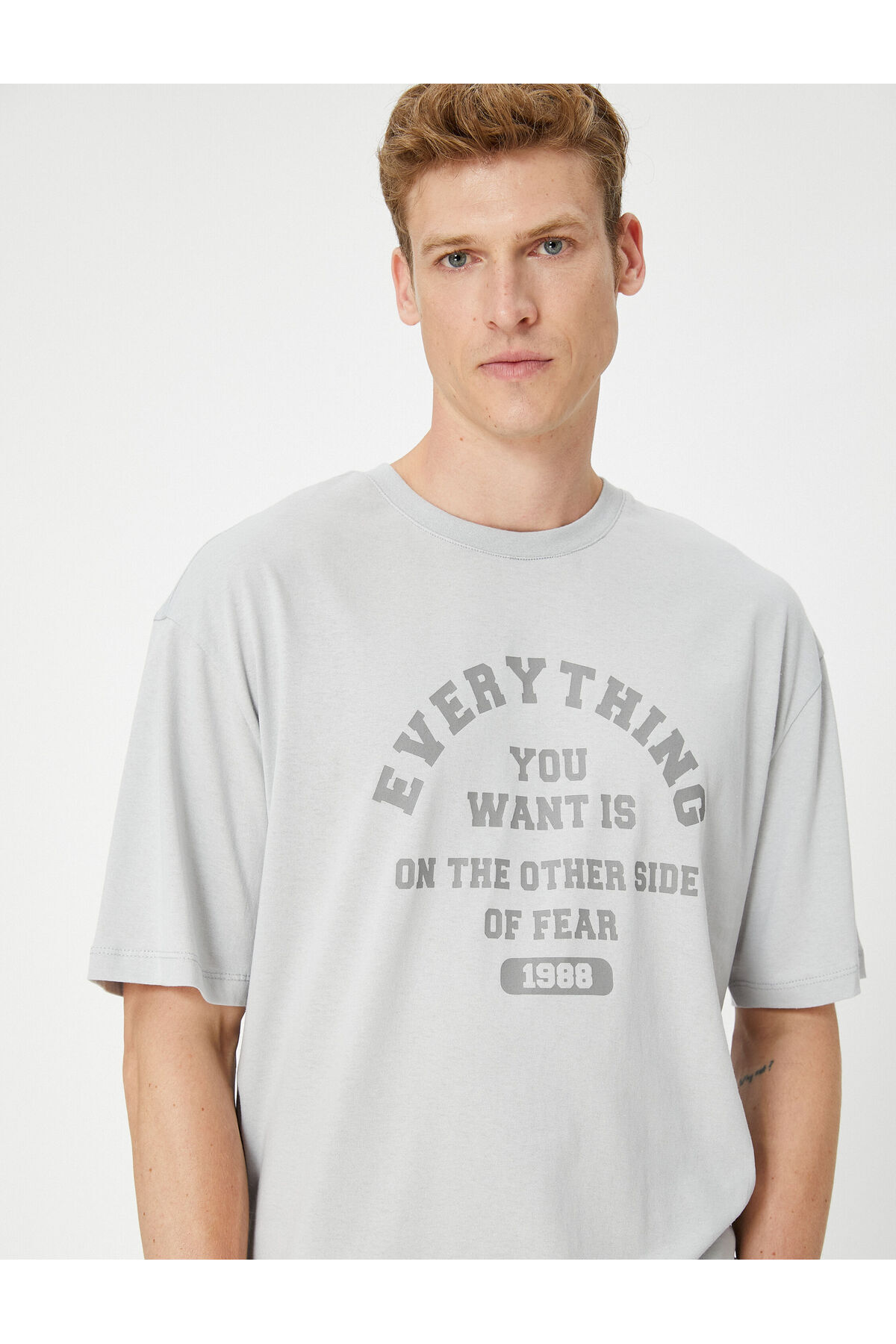 تیشرت مردانه خاکستری کوتون | 4WAM10066HK اورجینال