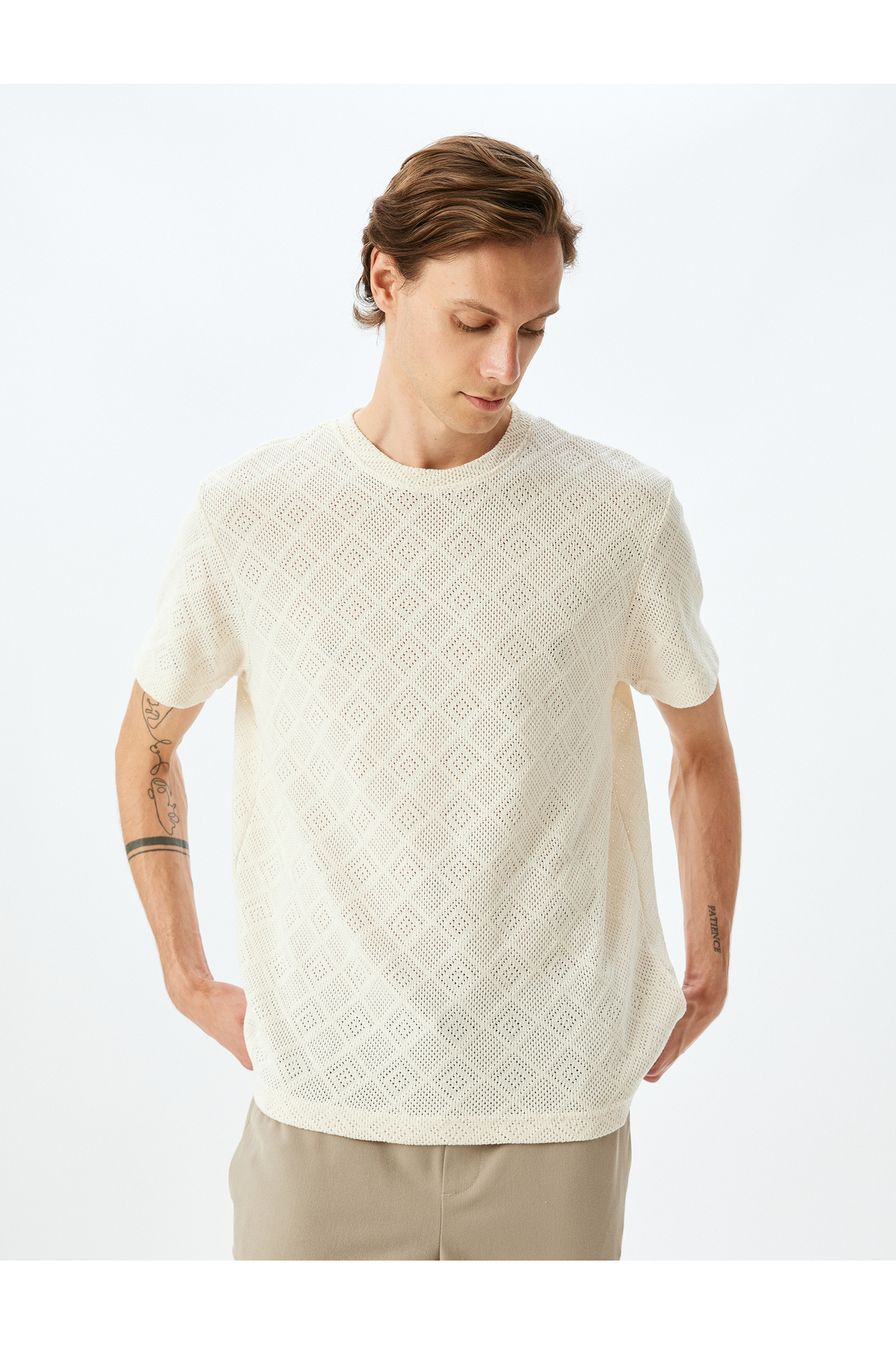 تیشرت آستین کوتاه یقه گرد طرحدار نخی طرحدار معمولی
