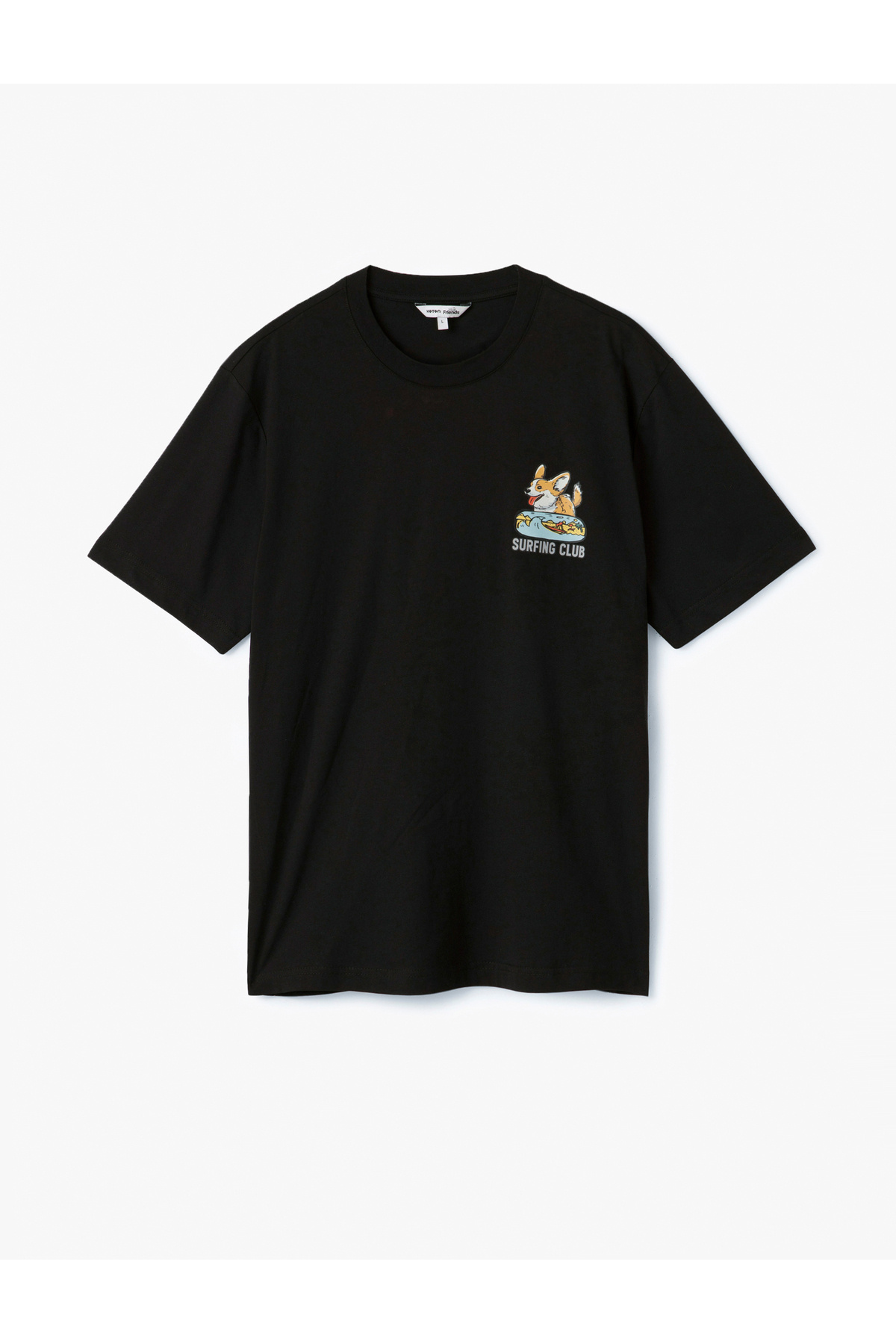 تی‌شرت طرح سگ یقه گرد آستین کوتاه نخی معمولی