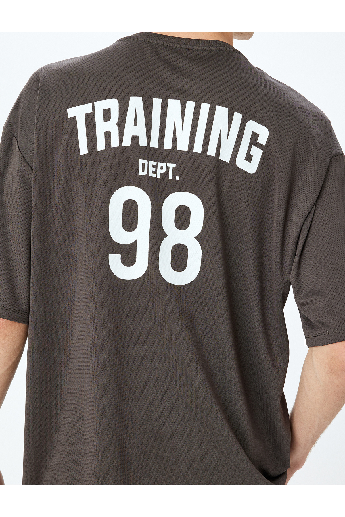 تیشرت ورزشی آستین کوتاه یقه گرد طرح دار از پشت