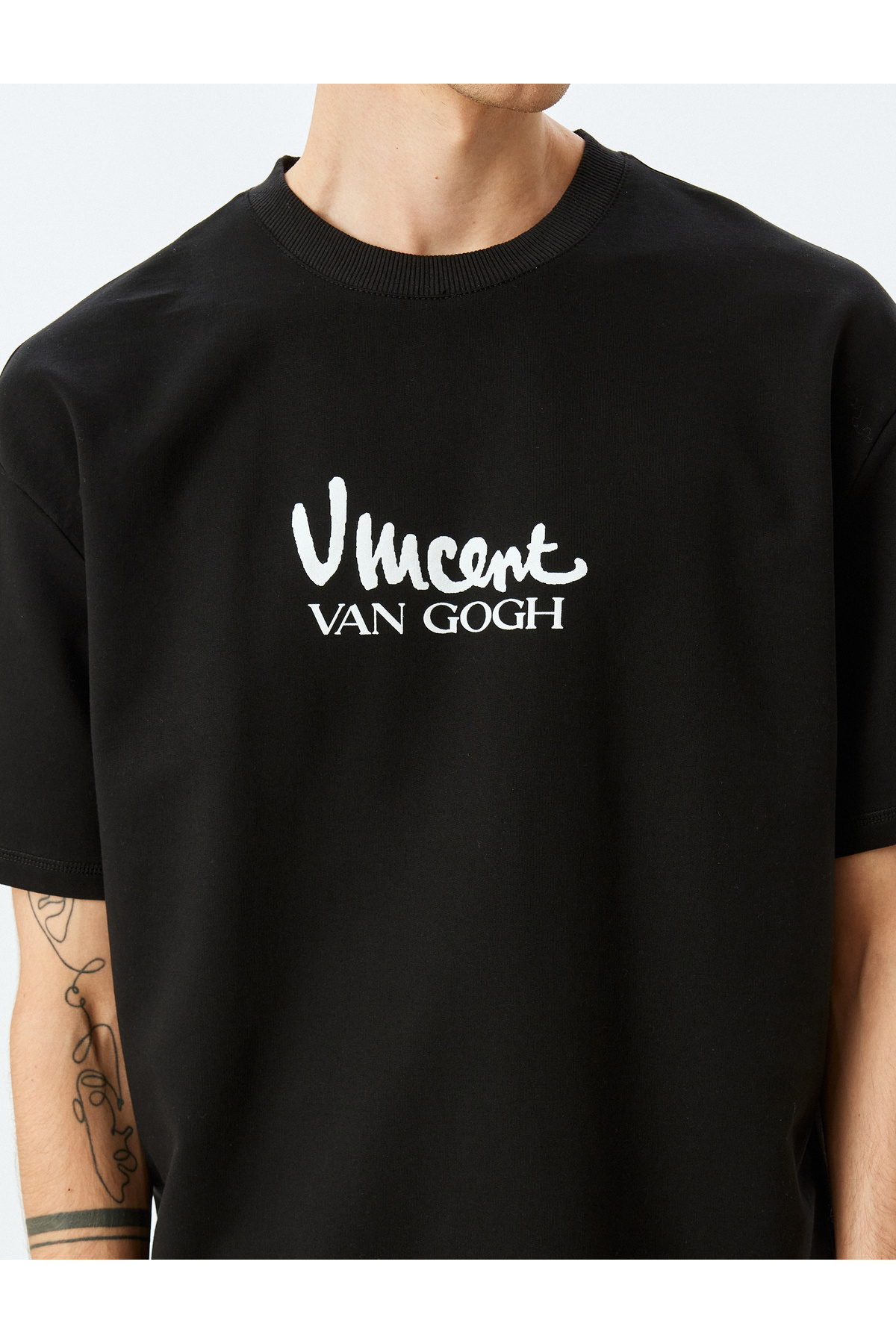 تیشرت نخی آستین کوتاه یقه گرد سایز بزرگ طرح ون گوگ