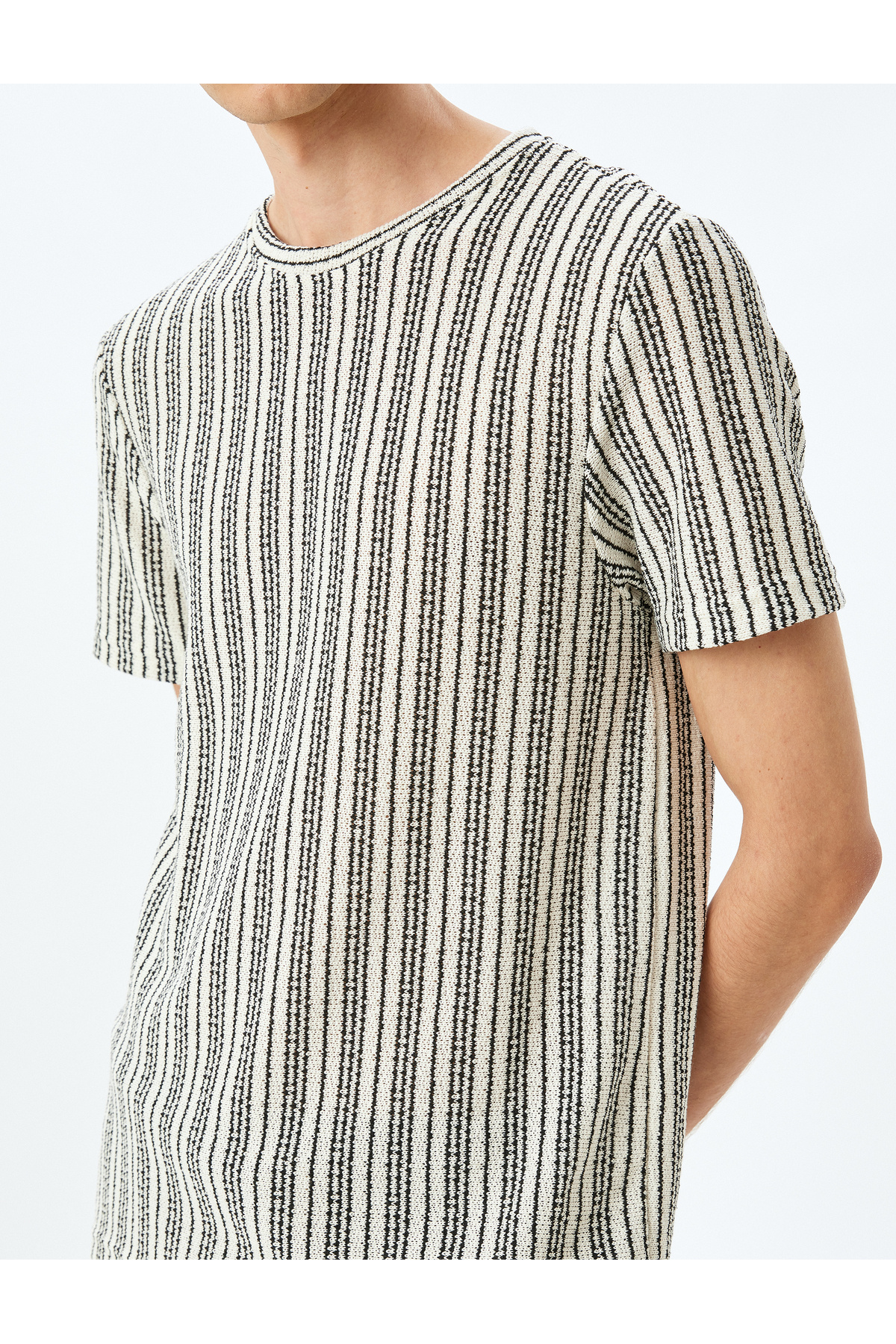 تی‌شرت آستین کوتاه طرح راه راه نخی یقه گرد