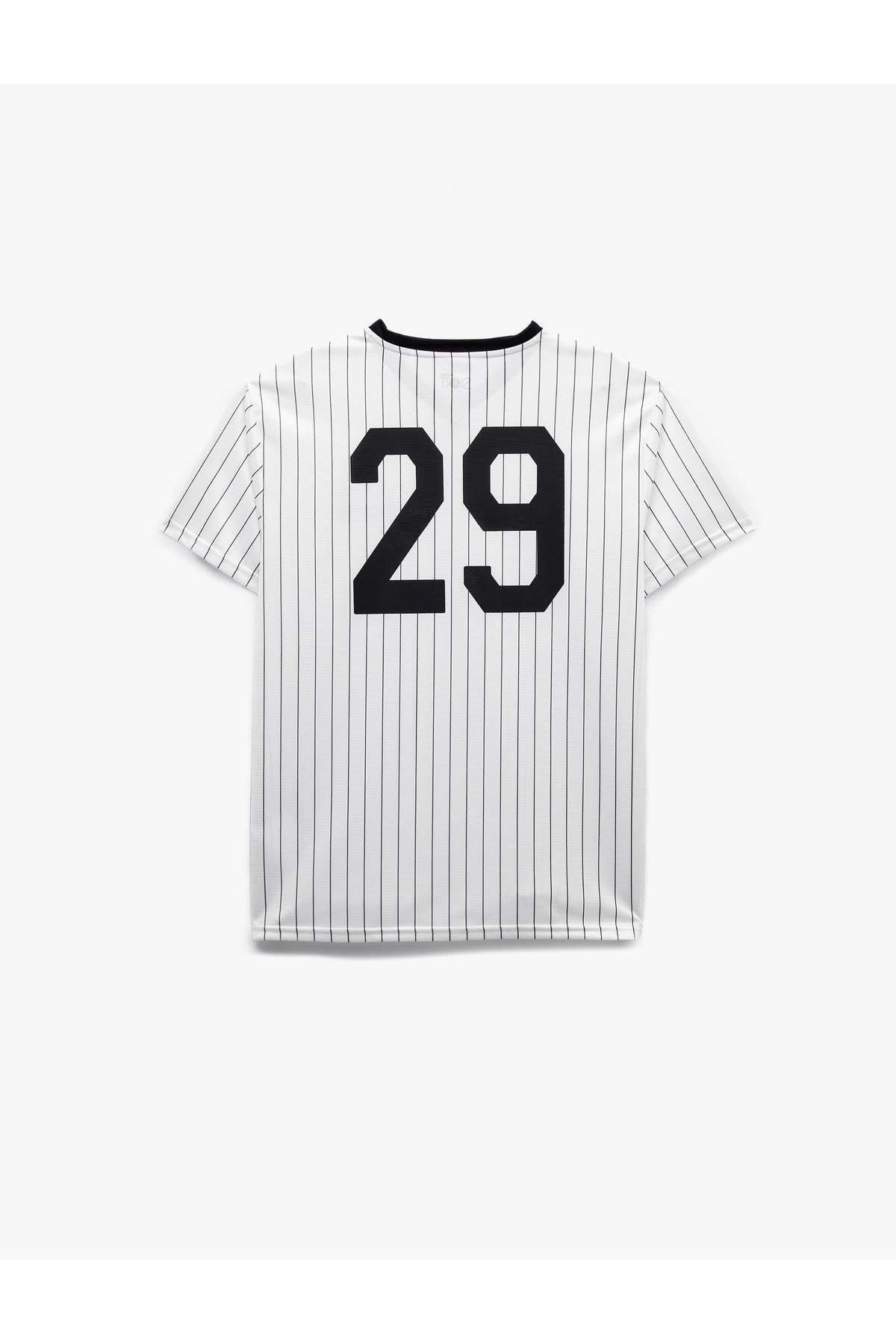 تی‌شرت ورزشی طرح‌دار آستین کوتاه یقه هفت راه راه