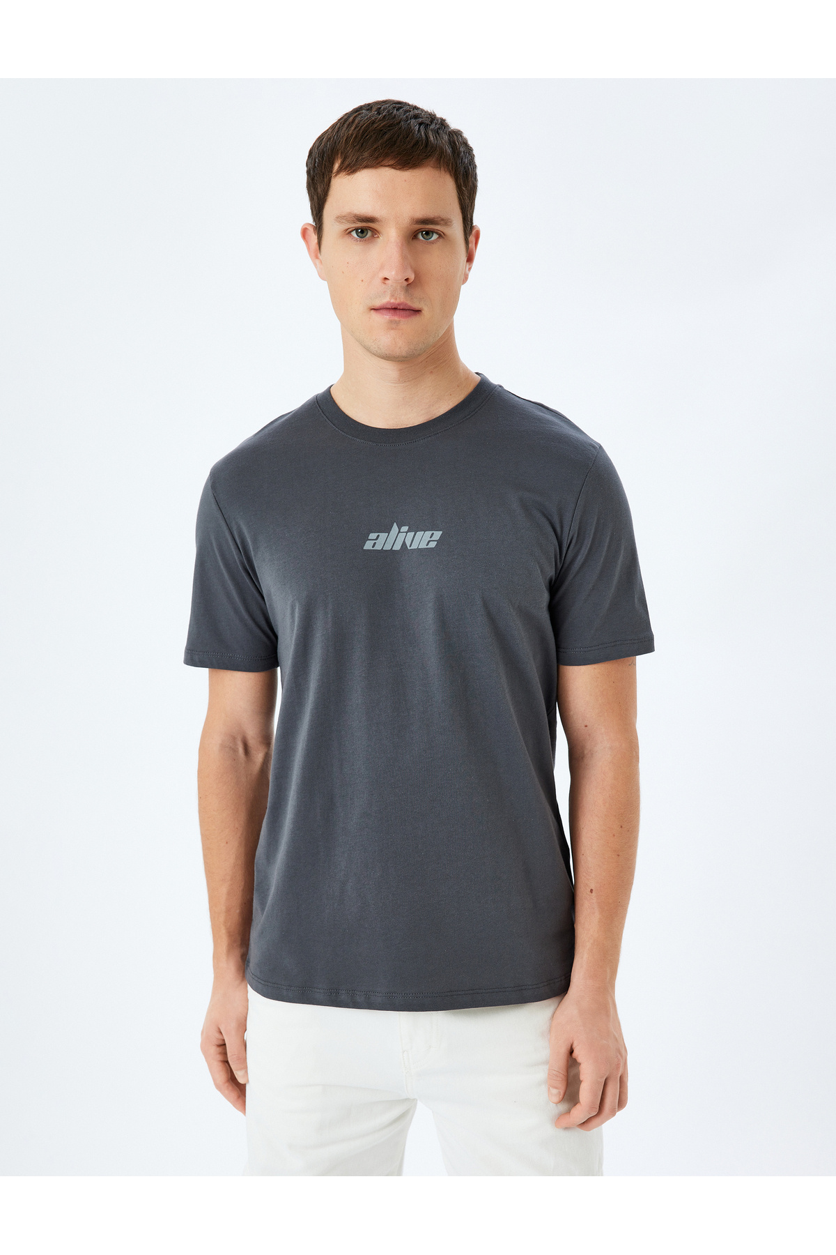 تیشرت آستین کوتاه یقه گرد طرح دار طرح شعار