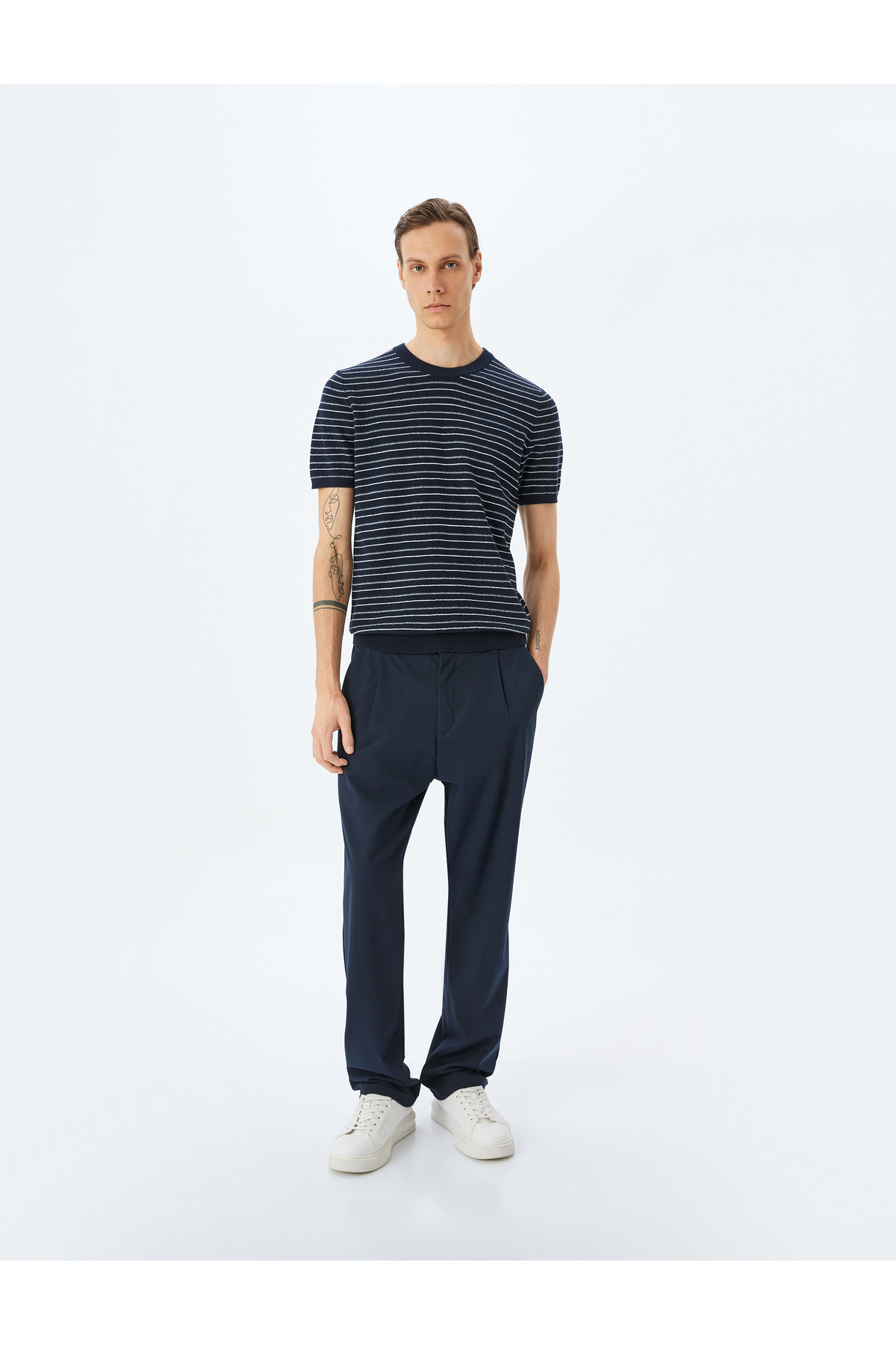 تیشرت بافتنی راه راه نخی آستین کوتاه یقه گرد
