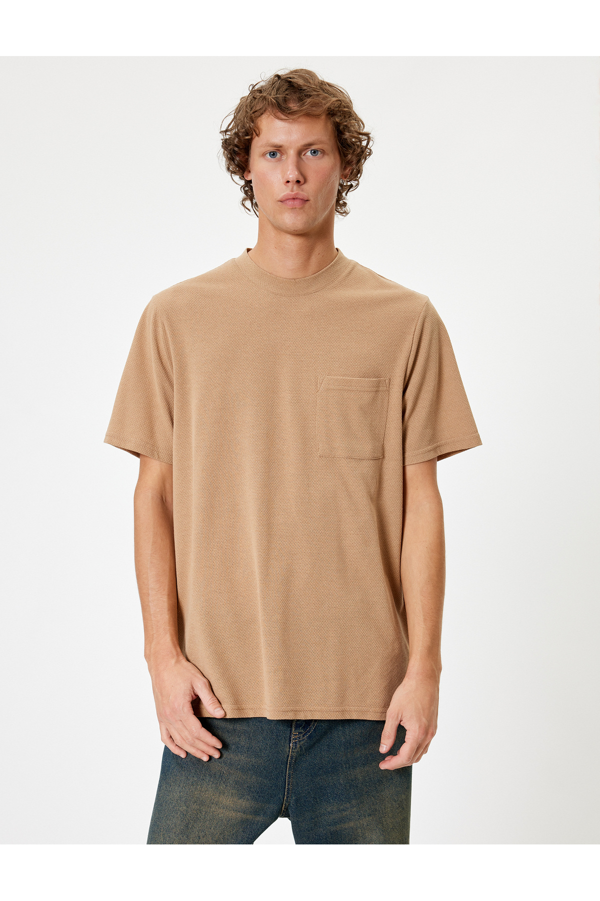 تیشرت آستین کوتاه طرح ترکیبی نخی یقه گرد با جیب