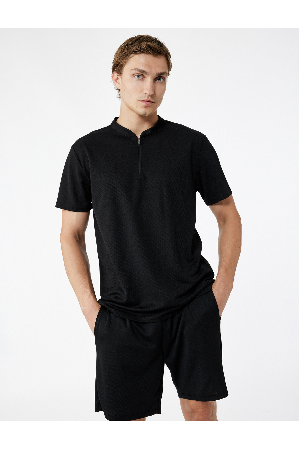 تی‌شرت ورزشی آستین کوتاه یقه ایستاده نیم زیپ