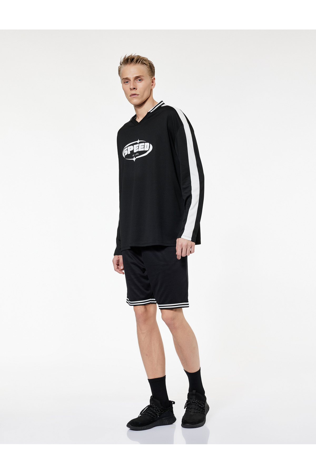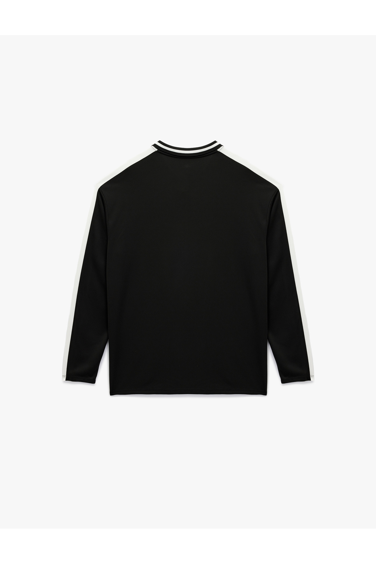 تی‌شرت ورزشی یقه‌دار طرح‌دار آستین بلند و راحت