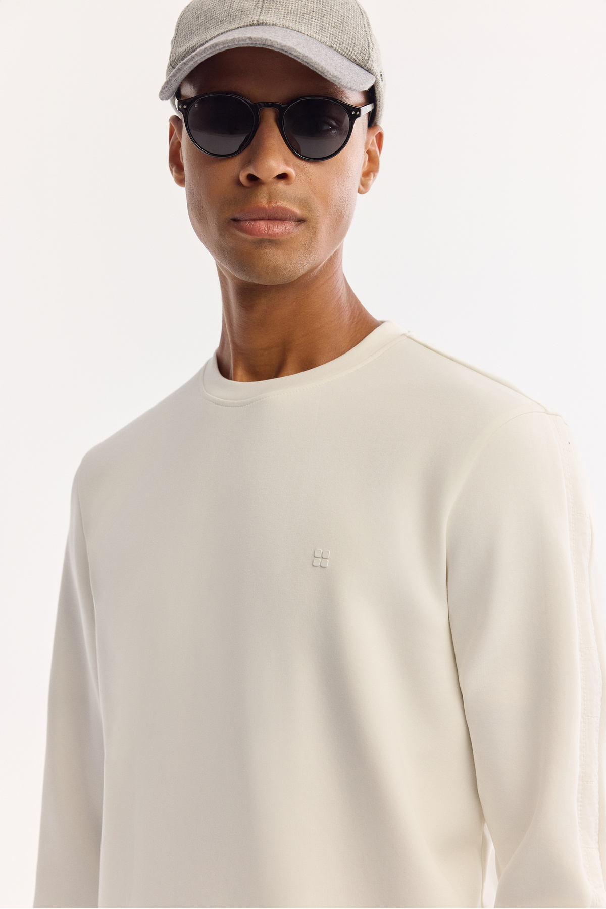 سویشرت مردانه یقه گرد نخی دو کشباف مدل Ecru سایز معمولی A52Y1272