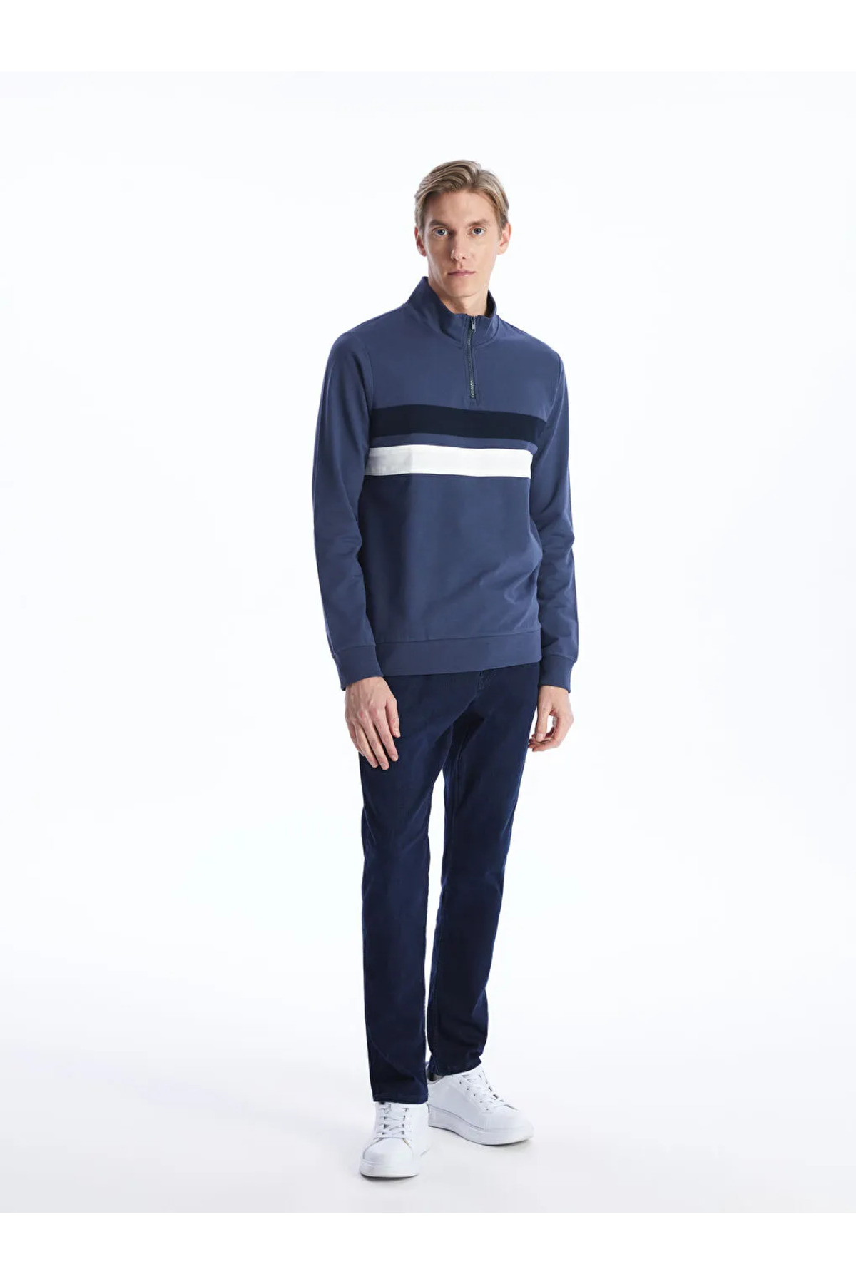 سویشرت مردانه آستین بلند طرح بلوک رنگی LCWAIKIKI کلاسیک، یقه ایستاده نیلی