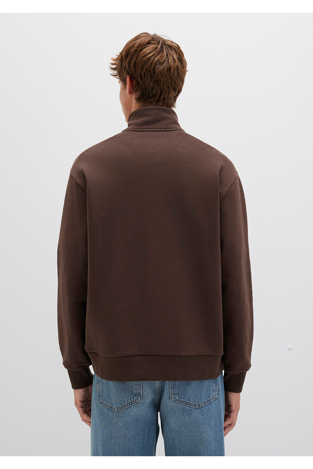 سویشرت قهوهای نیم زیپ لوگودار 0S10465-88067