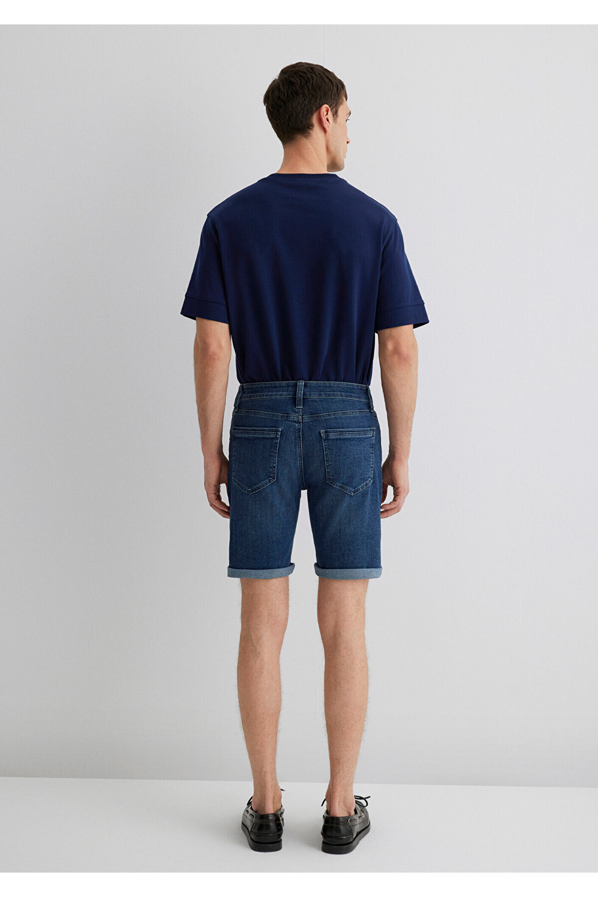 شورت و شلوارک ماوی آبی پنبه ای | شلوارک جین آبی تیره طرح قدیمی برایان پریمیوم از مجموعه جین ماوی.